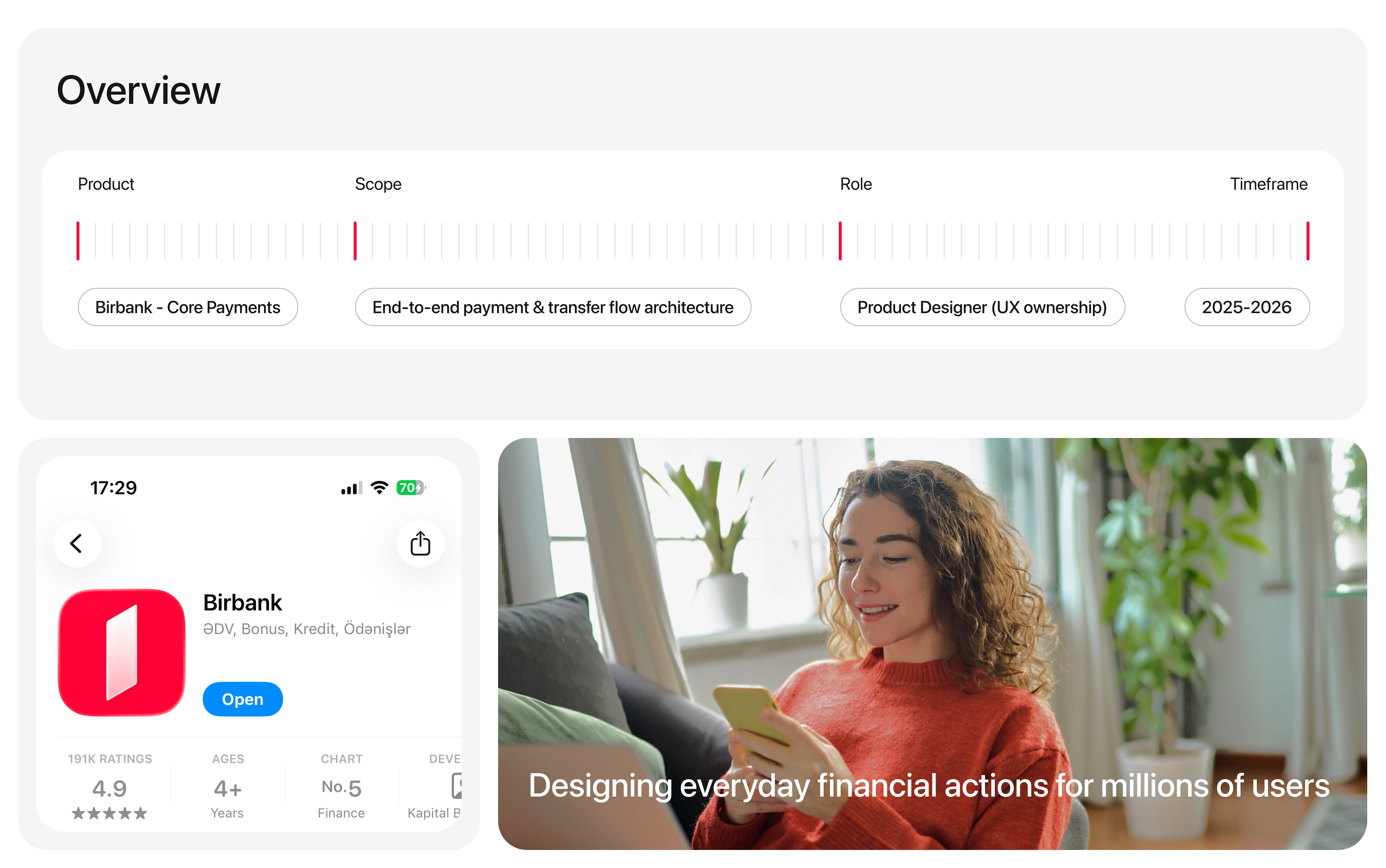 Led the design of critical daily banking flows for one of Azerbaijan’s most widely used digital products, serving 3M+ active users.