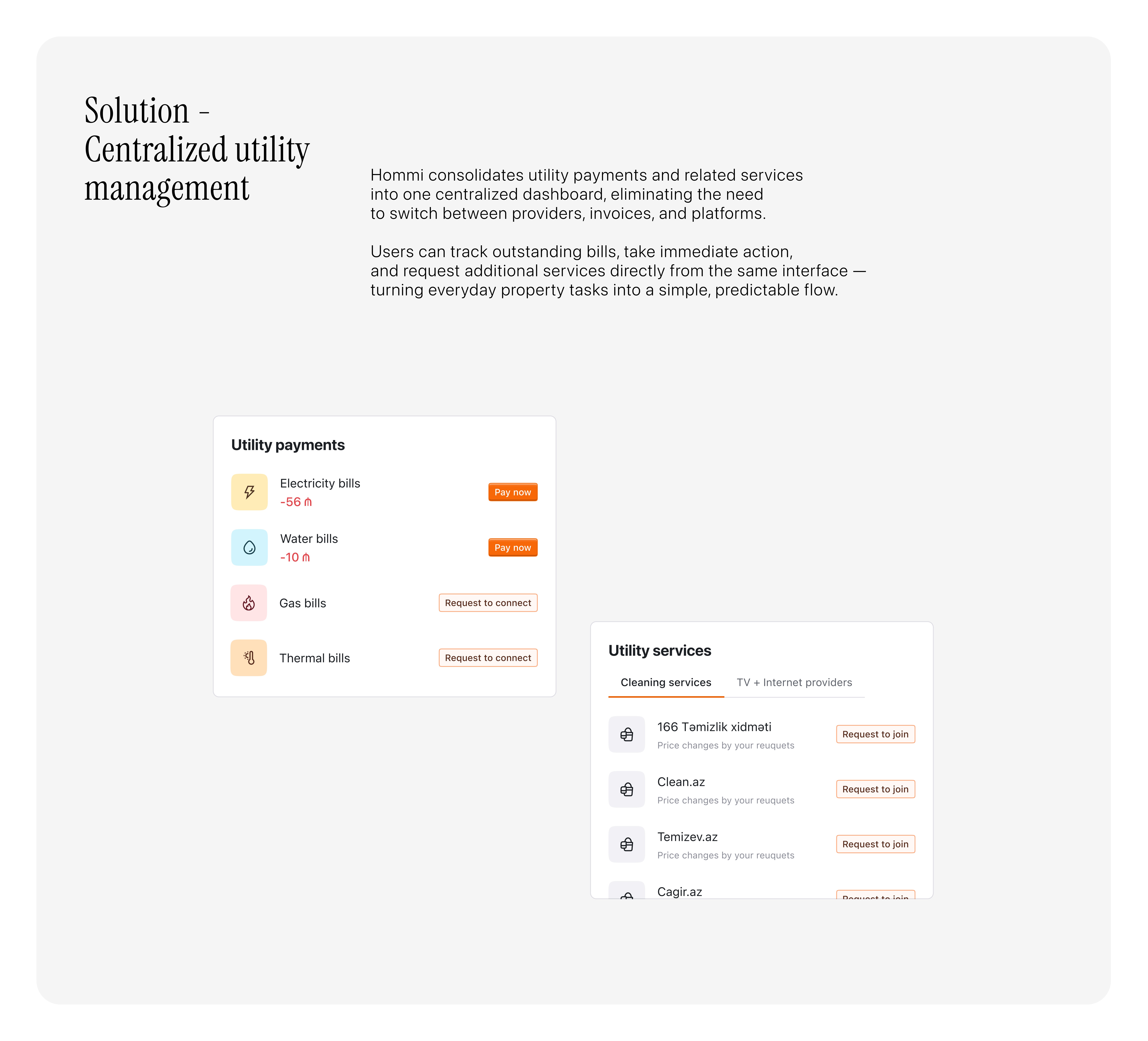 The product brings together market valuation, sale and rental insights, and utility management into one coherent experience — supporting both long-term property decisions and daily tasks. Instead of relying on fragmented tools and paperwork, users gain a clear overview of their assets, performance trends, and ongoing responsibilities in one place.