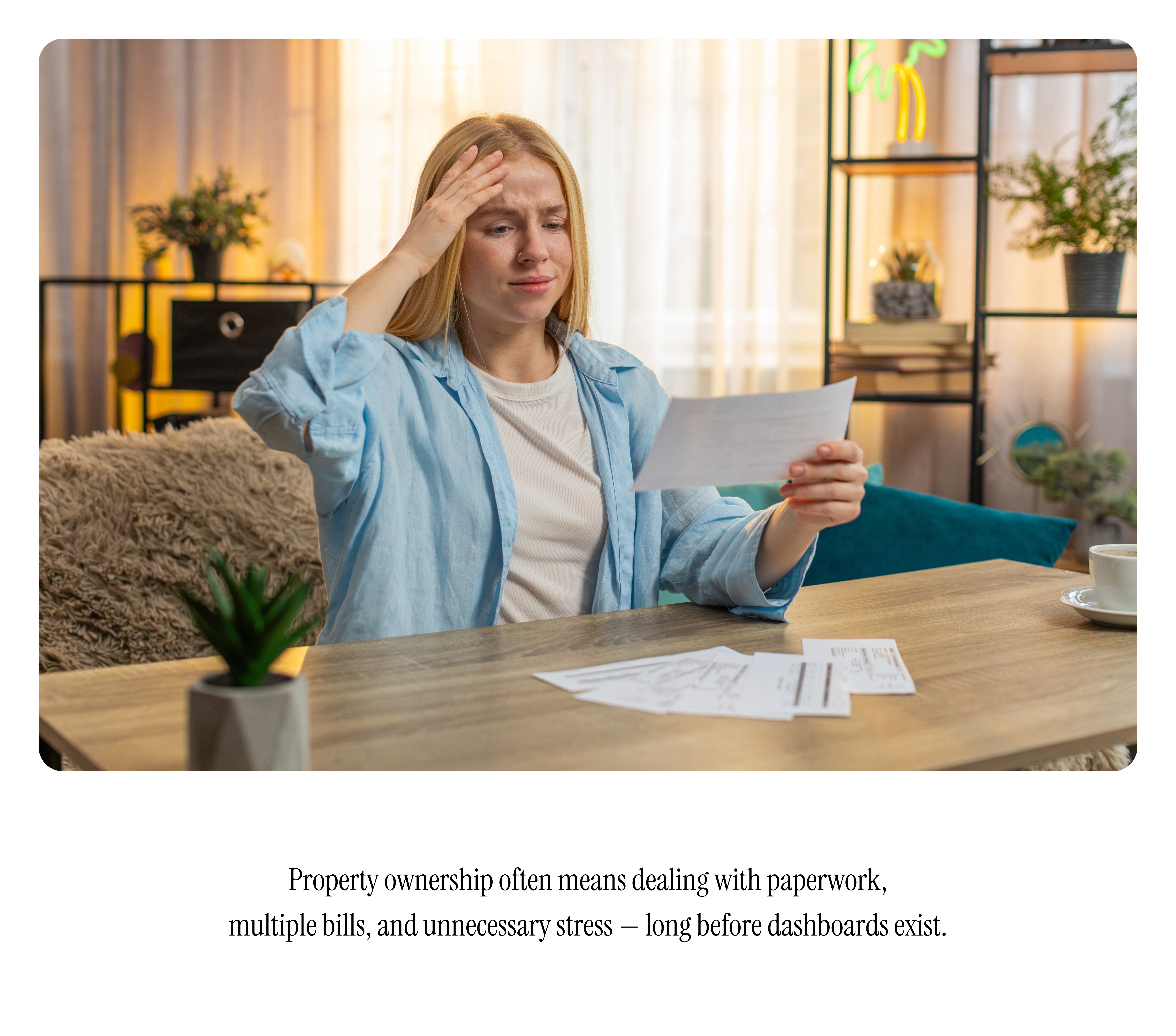 This case study focuses on the core dashboard experience: how information hierarchy, decision-based grouping, and calm visual design reduce cognitive load while keeping critical insights accessible. By separating strategic decisions (sale and rental) from high-frequency operational tasks (utilities and services), the dashboard supports clarity, control, and confident property ownership throughout the entire lifecycle.